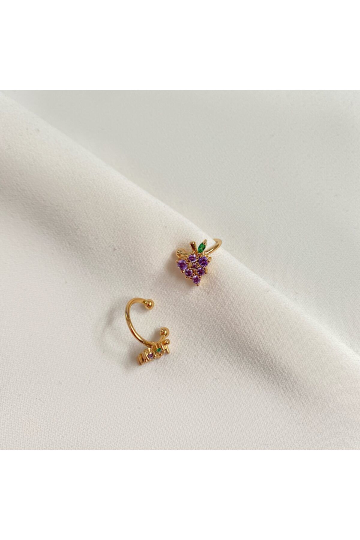 Kadın Gold Renkli Üzüm Kıkırdak Küpe Earcuff